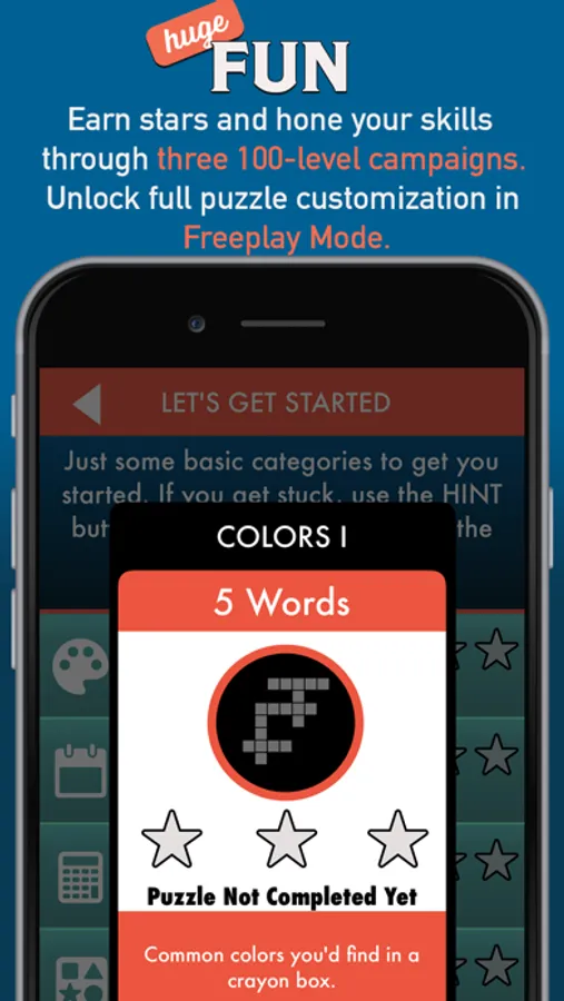 - Freeplay mode - choose any topic and any grid size for unlimited play