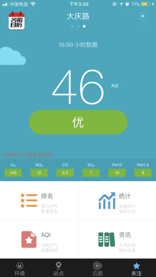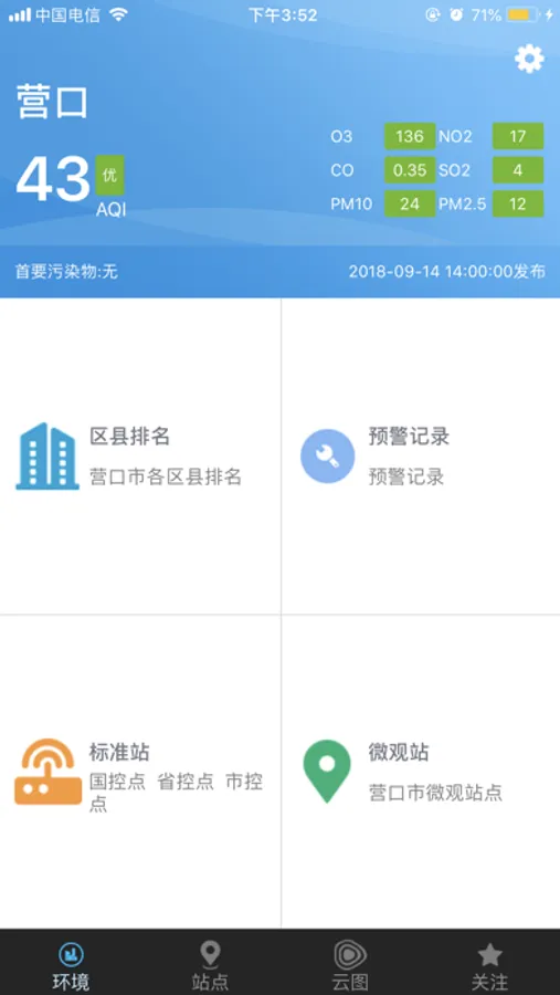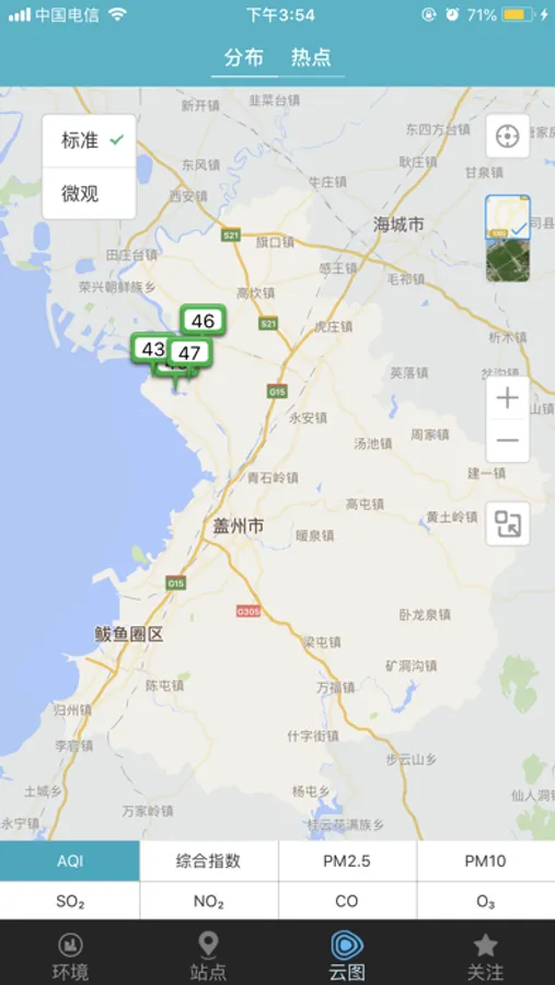 营口空气APP切实响应党的十八届五中全会提出的“创新、协调、绿色、开放、共享”的发展理念,采用“网格化布点+多元数据融合+时空数据分析”的模式,实现营口大气颗粒物空间、时间上全方位的信息情况的自动生成,双层网格数据进行叠加对比分析和校准,二者结合,数据比对修正,生成时空动态趋势图从而获取全区高密度高频度的大气颗粒物浓度监测数据,运用基于GIS的后台数据分析系统,进行监测数据的筛查、校准、统计分析和动态图绘制,实现营口大气颗粒物浓度的时空动态变化趋势分析,进而判断污染来源,追溯污染物扩散趋势,对污染源起到最大程度的监管作用,为环境执法和决策提供直接依据。