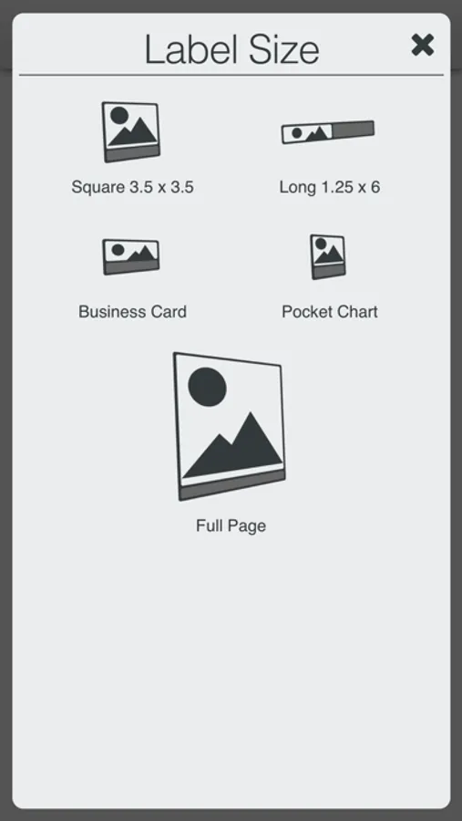 •Select label size