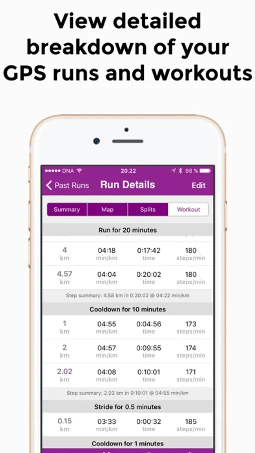 One of the best features of the app is voice-guided workouts. These range from speed workouts to negative-split long runs, with more being regularly added with app updates. These workouts have been carefully selected following the recommendations of world's top running coaches and professional runners. After the workout is complete, you can review all the steps in details and see elapsed times and average paces.