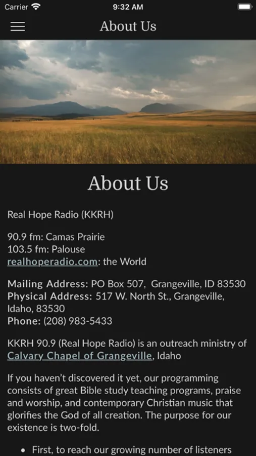 Real Hope Radio (KKRH 90.9) is an outreach ministry of Calvary Chapel of Grangeville, Idaho