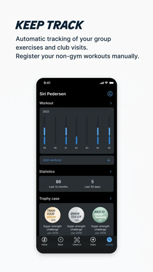 Activities that are performed at our clubs are automatically added; check-ins, group classes and PT sessions.