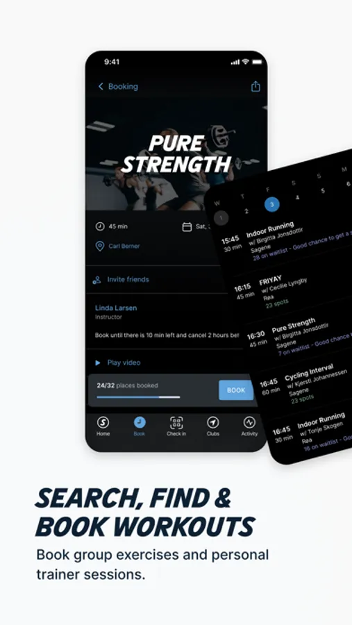 SEARCH, FIND & BOOK WORKOUTSnFind and book the perfect group class or book a PT that can help you on your way to reach your goals, all added to your personal calendar if you want to. If you book a class and something changes, we will notify you from the app.