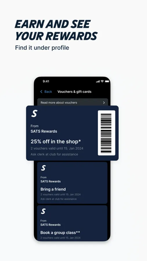 In SATS you earn extra benifits and discounts for working out or being loyal! All these can be found and used from the app.