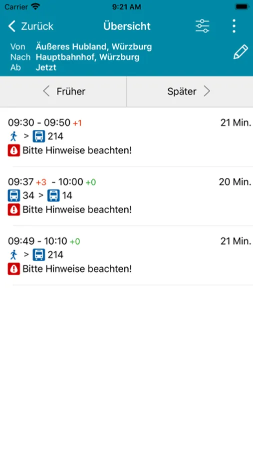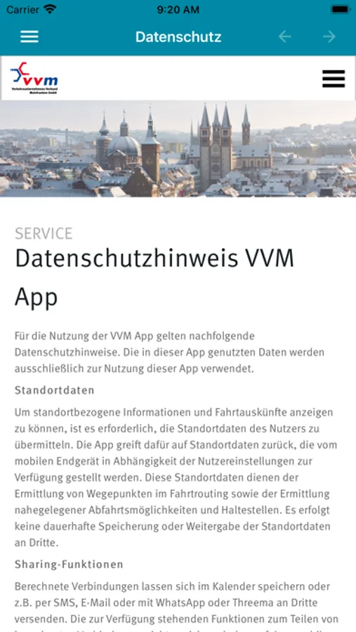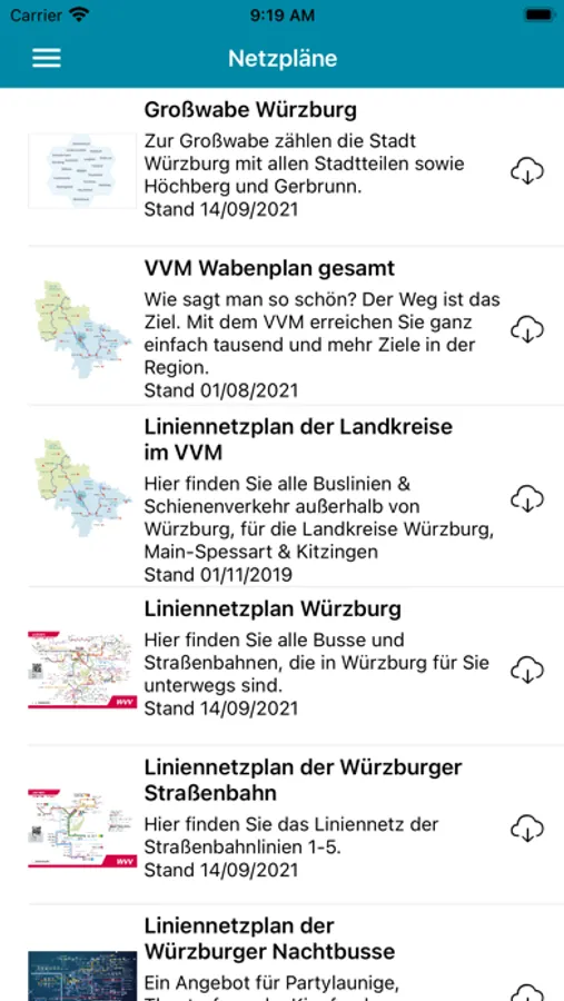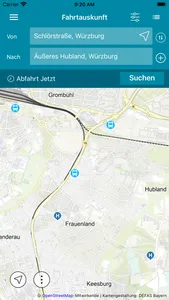 ein hilfreicher Begleiter im öffentlichen Verkehr in ganz Mainfranken. Neben Tür-zu-Tür-Verbindungen informiert die mobile Fahrplanauskunft für Straßenbahn, Bus und Bahn über Abfahrten und Ankünfte vom Standort des Nutzers, der Haltestelle oder aus der Karte. Für zahlreiche Verkehrsmittel stehen dabei Echtzeitdaten, wie Verspätungen und Ausfälle zur Verfügung. Zusätzlich können die Positionen der Verkehrsmittel auf der Karte mitverfolgt werden. Die Favoriten ermöglichen den bequemen Abruf von Fahrtinformationen für häufig genutzte Verbindungen. Die komplette Reisekette kann auf der Karte oder im Luftbild inklusive der Fußwege nachvollzogen werden. Ebenfalls sind die wichtigsten Liniennetzpläne im „Bereich Netzpläne“ des Verbundes abrufbar.