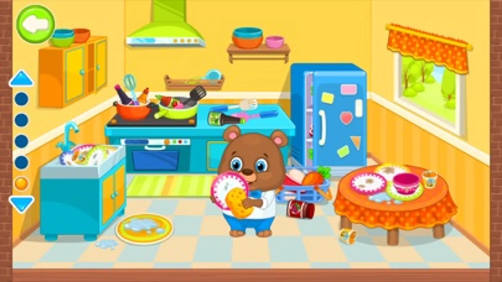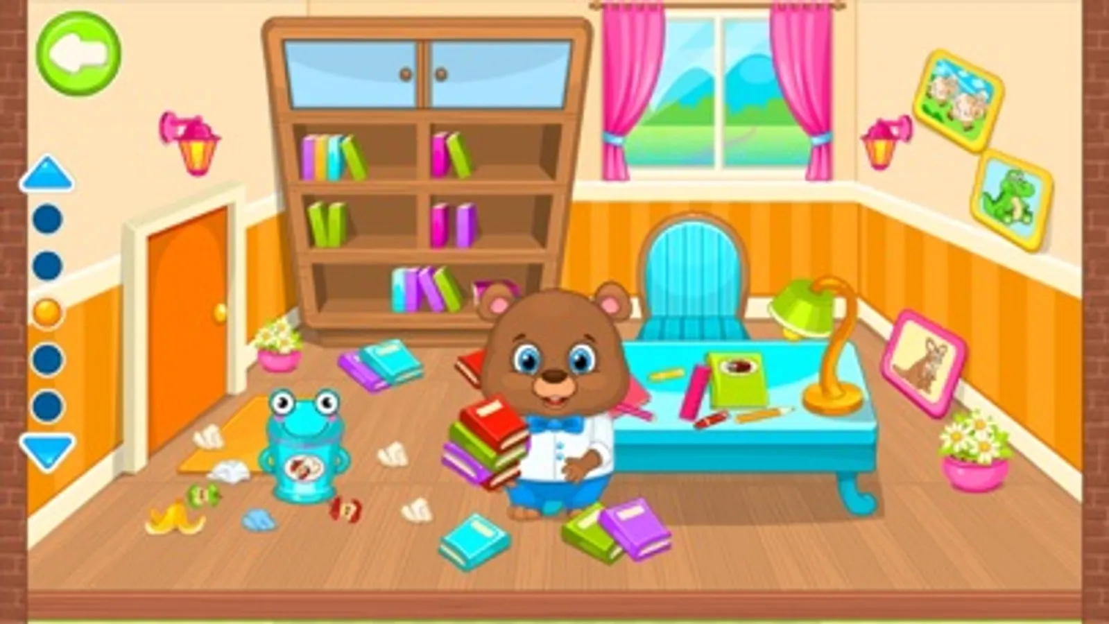 Carrying out different tasks, adding up things and putting things in order in one room after another, your kid will move from one floor to another, while in a fun game form he learns how to right, and it's really fun to clean the house.