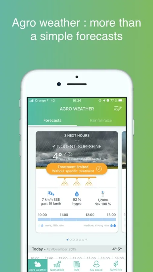 - adapt your activities in real time thanks to high precision weather forecasts for next 3 hours