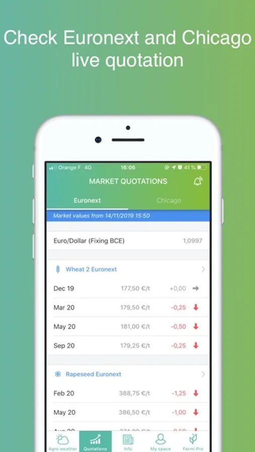 - Save your time by directly consulting the Euronext and Chicago (CBOT) listings in FARMI