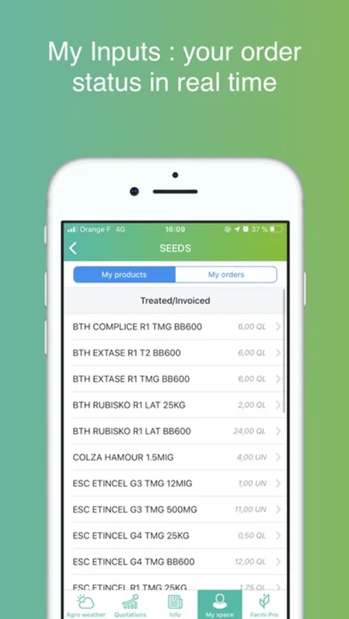 - track the progress of your orders, find quickly the latest products and quantities using simple product groups