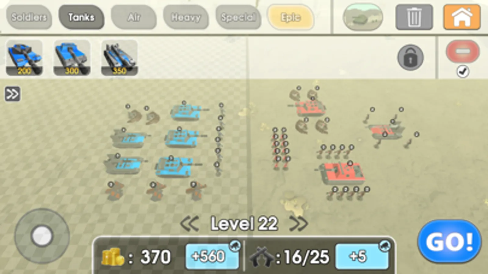 Form your strategies, choose between vehicles, soldiers and flying military troops and place them wisely on the battlefield and beat every opponent !
