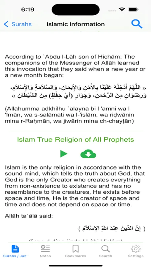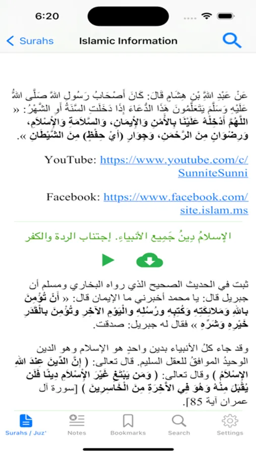 Receive regular Islamic information in the application in Arabic, French, English, Spanish