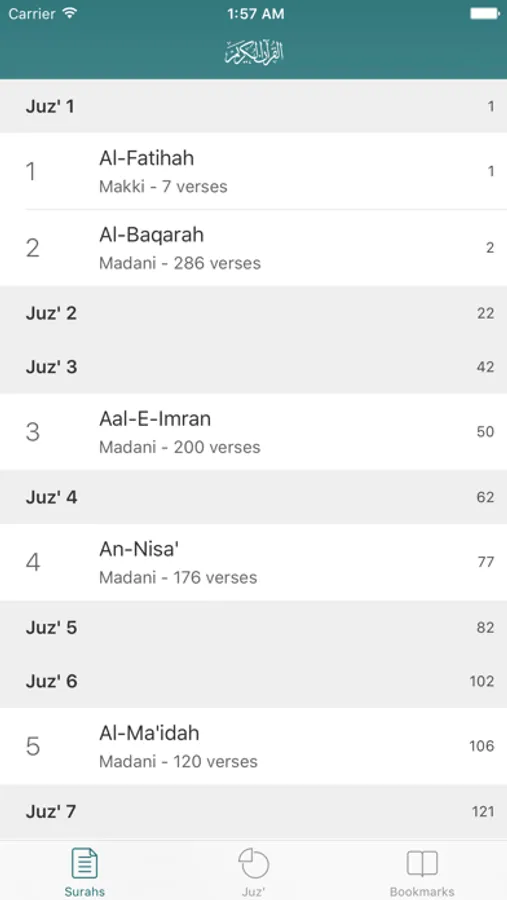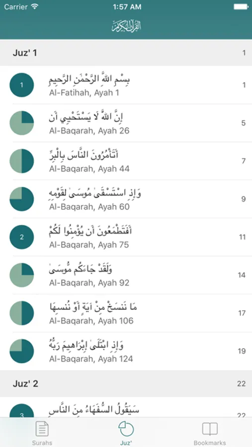 سورة، حزب، جزء، مفضلة لإكمال القراءة