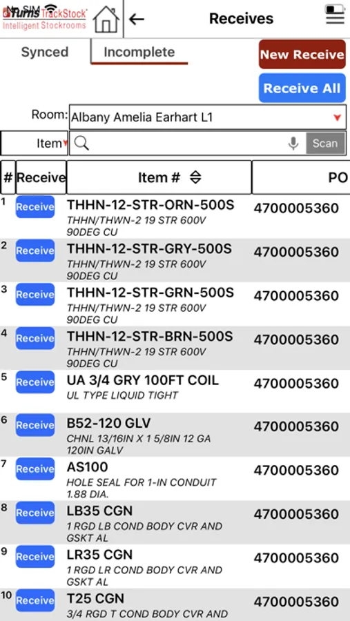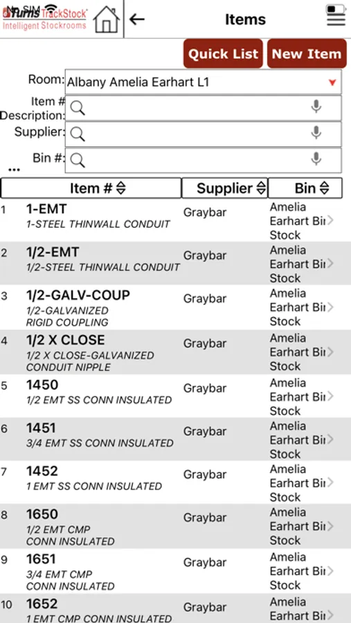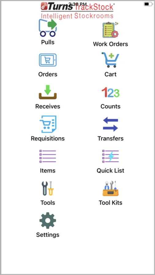 eTurns TrackStock iPhone app allows users to quickly order or track consumption of any of the items that already exist in their eTurns Stockrooms. ORDERS: either the distributor rep (VMI) or the end-customer (CMI) can SCAN any of an item's bar codes (or search for items) and quantity to place an order with any distributor. The order is transmitted either by cell phone or WiFi connection. Order confirmation is provided quickly with an email back to the user’s email account on the iPhone, noting the Stockroom and account, the items ordered successfully and the items not ordered successfully and why. PULLS: a user can SCAN bar codes to record they have pulled an item from inventory which, when the on-hand quantity falls below a MINIMUM, will trigger a Suggested Order back to any supplier. WORK ORDER PULLS: users can group parts and labor pulls on a work order for tracking costs on jobs they perform for themselves or at customers job sites. INVENTORY COUNTS: users may count inventory and update the on-hand quantity of the items counted. Any authorized user with access to the web will have visibility into the remote stockrooms inventory, transactions, and reporting.