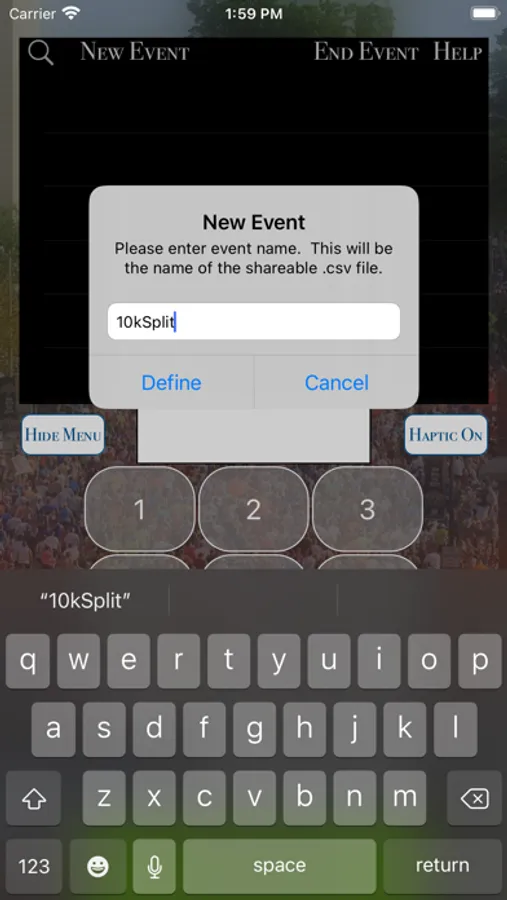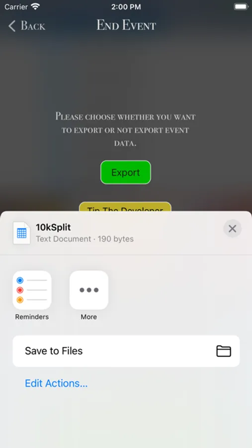 At the completion of the event, you are able to share the .csv file by any mean available in your iOS share sheet.