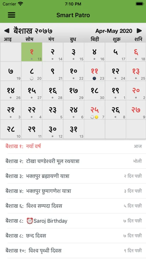 Nepali Calendar - Smart Patro is the Multicultural calendar with events & festivals of all the cultural ethnic groups of Nepal. It includes public holidays, festivals, panchang and other important events. Smart Patro is exclusively developed for iPhone devices with latest development technology to make it much faster and smooth with a quick and clean interface which includes the following basic features useful for the Nepalese community in Nepal and Abroad.