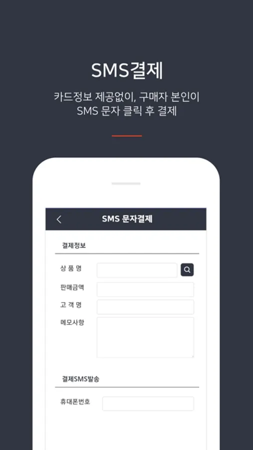 -SMS 문자를 고객에게 발송하여 고객 본인이 카드결제 정보 입력하는 서비스 입니다.