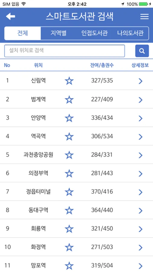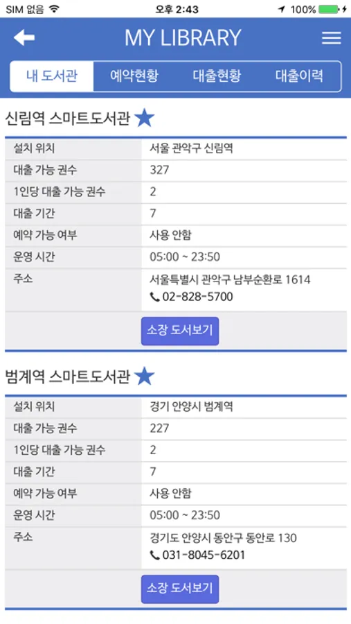 - 즐겨 찾기 등록(나의 도서관으로 설정)