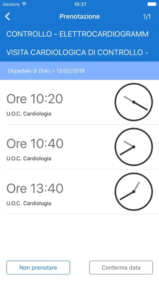 - elenco prestazioni e scelta appuntamenti
