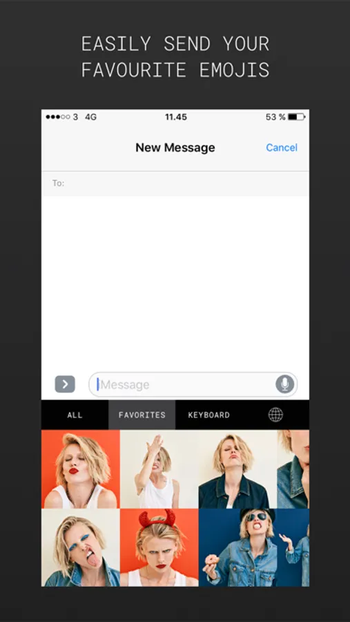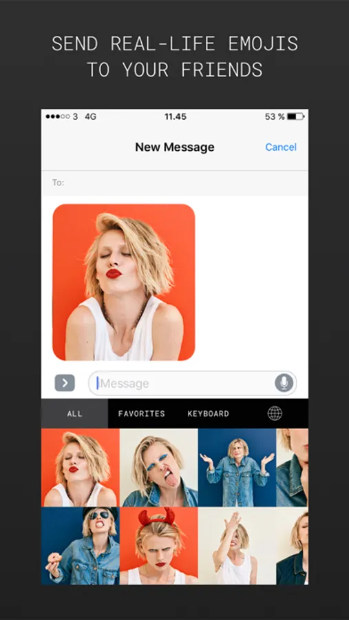Noisy May Emojis is installed as a full app with a Keyboard extension so you instantly can add real life emojis to any text message, chat or group chat.