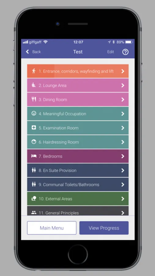 The Iridis app is an assessment tool for dementia design developed by the University of Stirling and Space Architecture (Europe) Ltd. This app is based on the University of Stirling's Dementia Design Audit Tool, Cunningham et al (2011) and is intended for carrying out dementia design assessments of places where people live.