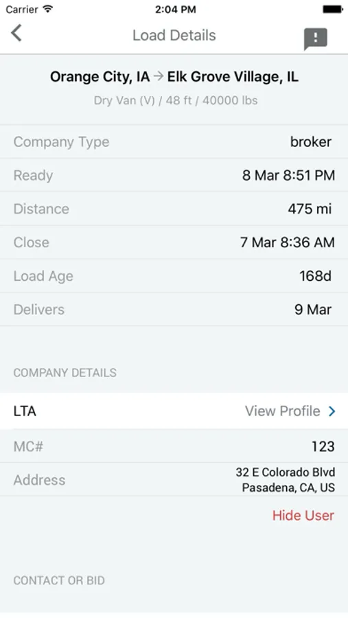* Bid and/or call on loads you find