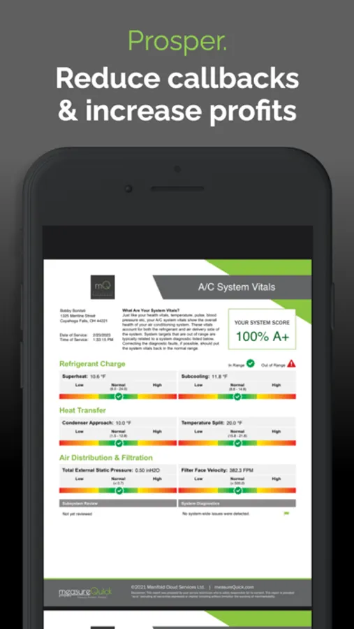 With measureQuick HVAC you can diagnose system problems from the most trivial to the most complex. Our powerful data aggregation tools, coupled with just-in-time education, will increase a technicians ability to solve problems on the job site, ultimately leading to a huge increase in productivity.