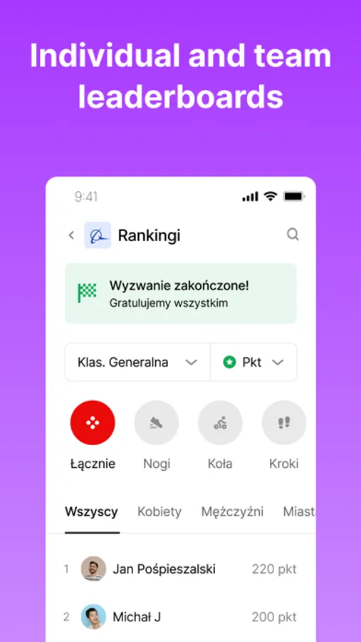 - Compete with friends in cycling and running challenges hosted by your city, employer, office, university or you.