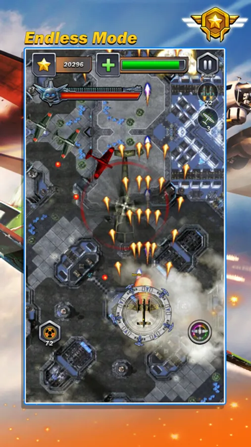 1. Finger click on the screen to control the fighters to move, to avoid the enemy's barrage and aircraft;