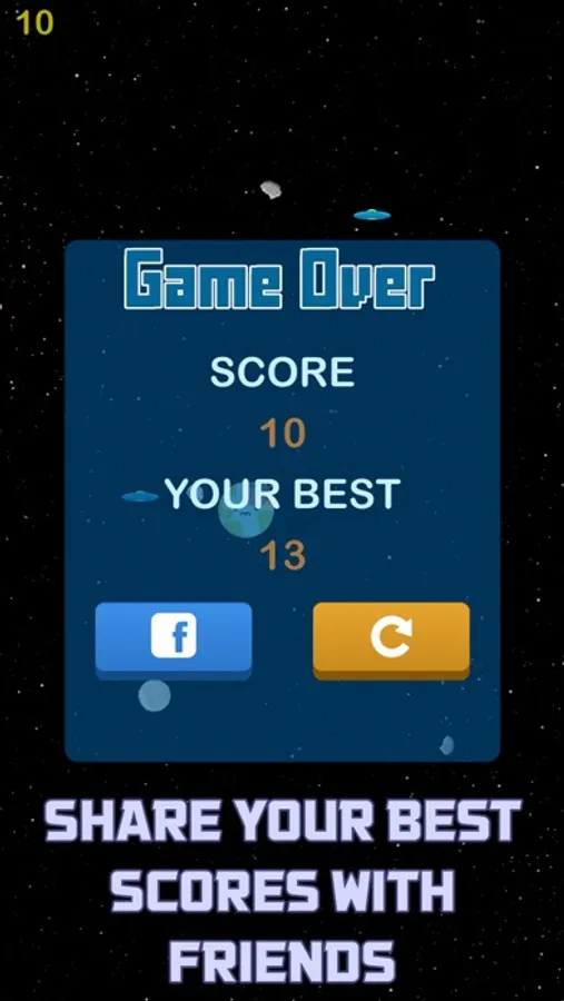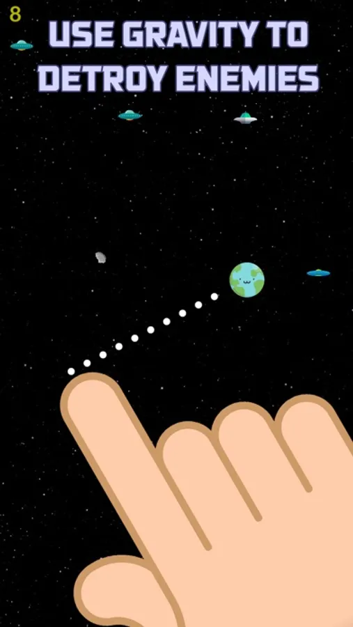 Meteoroids and Alien are on a rampage, one might hit mother planet Earth and kill us all!! You can save the planet Earth by avoiding any such fatal collision! Tap on the device to move the earth to safe place and avoid the direction of any approaching meteoroid, use gravity make meteoroids and alien ship hit each others to destroy them. Let's keep earth safe as long as you can!