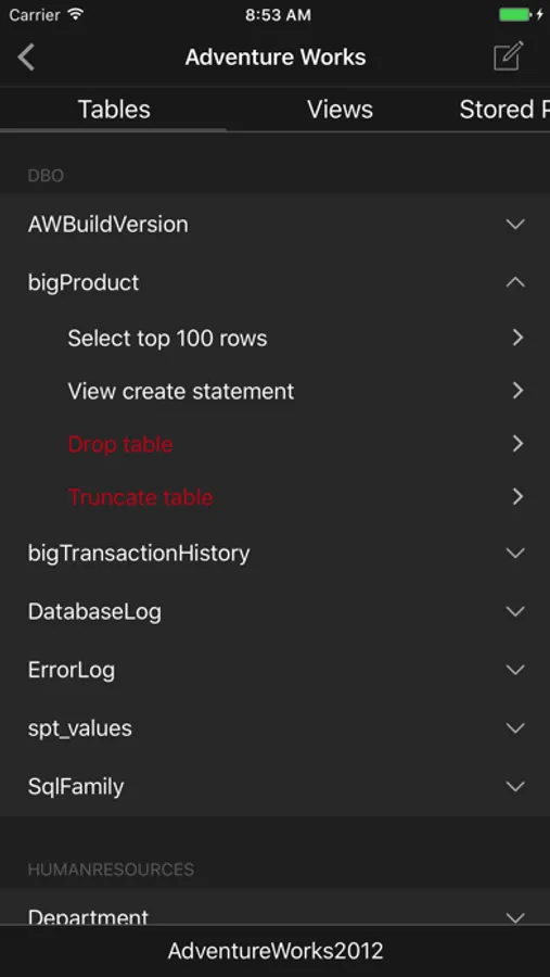 + Context aware database tree navigation, including quick access to tables, views, columns, indexes and much more!