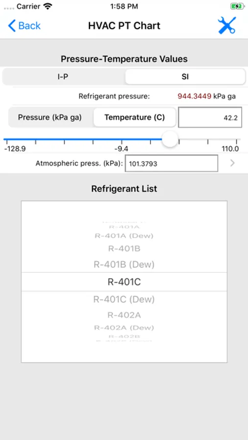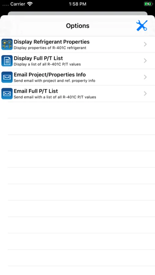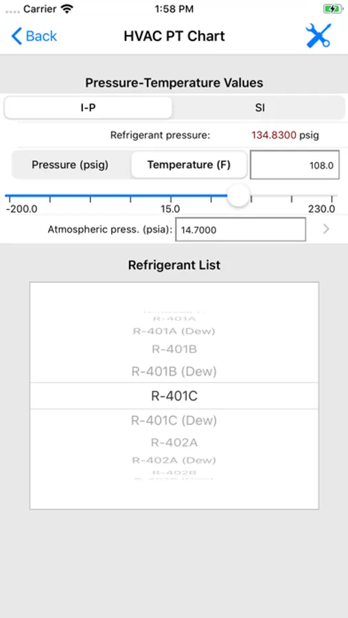 ASHRAE HVAC PT Chart is an electronic pressure temperature calculator that allows HVAC technicians and contractors to quickly look up the temperature and corresponding pressure for 100+ common HVAC refrigerants including both bubble and dew versions of azeotropic (mixture) refrigerants. This is the only PT Chart app that allows you to email complete PT chart lists, refrigerant properties, and your inputted values/results.