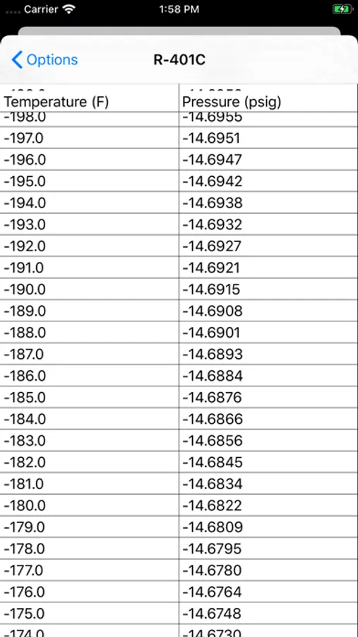 11. Email the full pressure/temperature list for the selected refrigerant