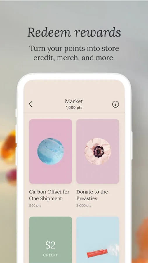 * Redeem your rewards, AKA Carrots, for free vitamins and merch.