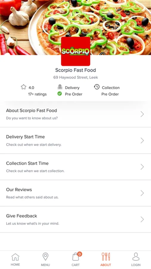 We're also available for ordering on https://scorpiofastfood.co.uk/storemenu and also on https://kuick.com/order/scorpio-fast-food