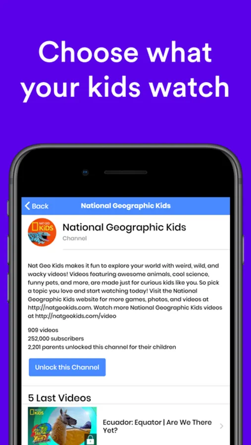 Our app uses a channel-restriction system to view YouTube (instead of an algorithm that can be easily hacked like YouTube Kids).