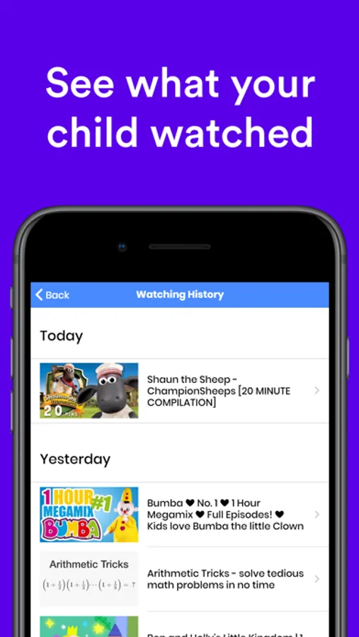 *100% PARENTAL CONTROL* Safe Vision gives you total control of your kids' video-based education and entertainment viewing. Use history to track viewing.