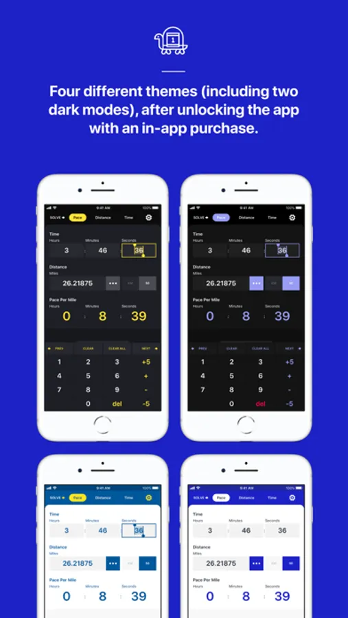 • Four different themes (including two dark modes), after unlocking the app with an in-app purchase.