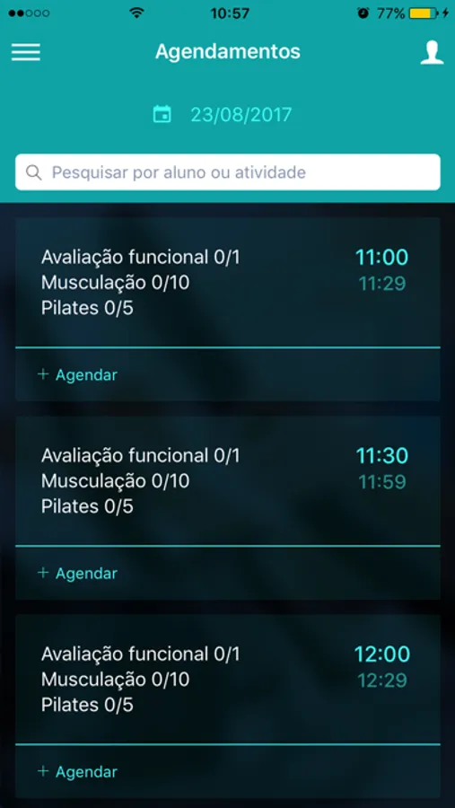 4) Acesso(*) as aulas coletivas cujo usuário logado é o responsável