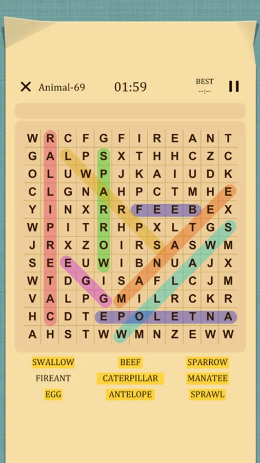 The game is easy to play, slide the letter up, down, left, right, diagonal in any of the eight directions. Search and find all hidden words in the grid. Increase your vocabulary and exercise your brain!