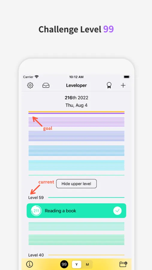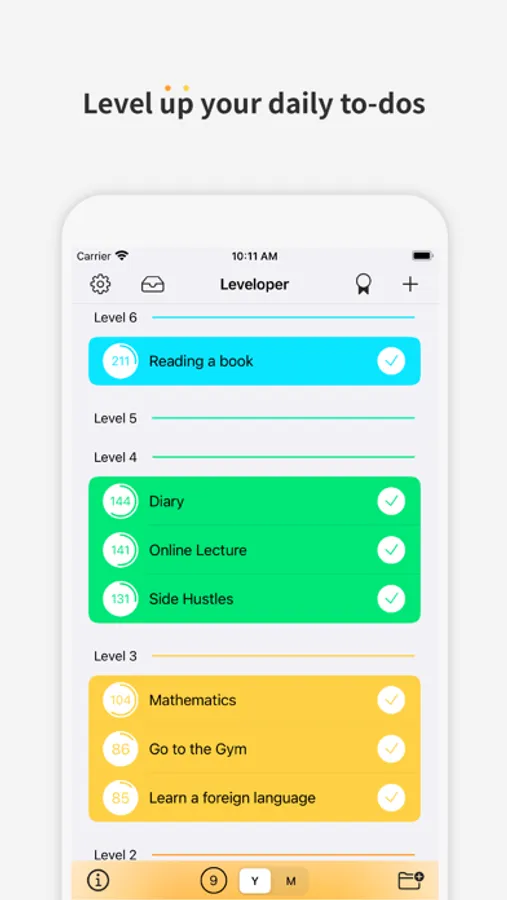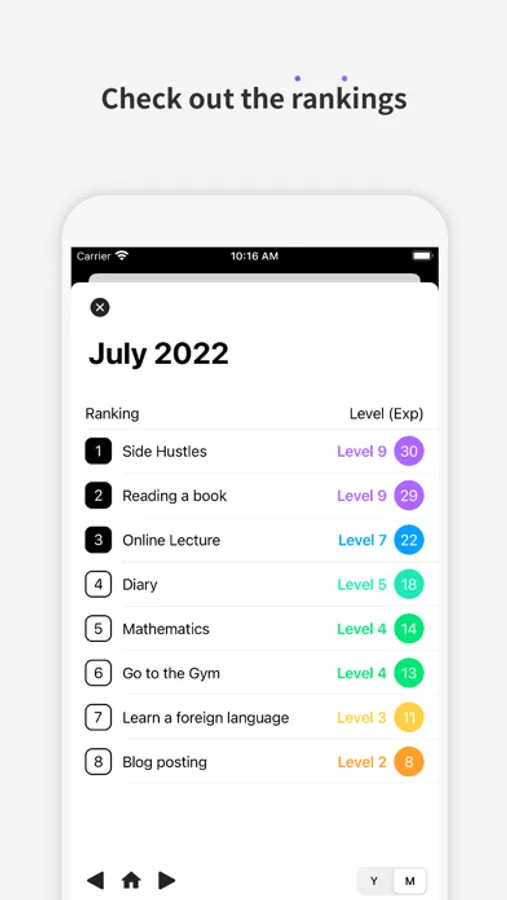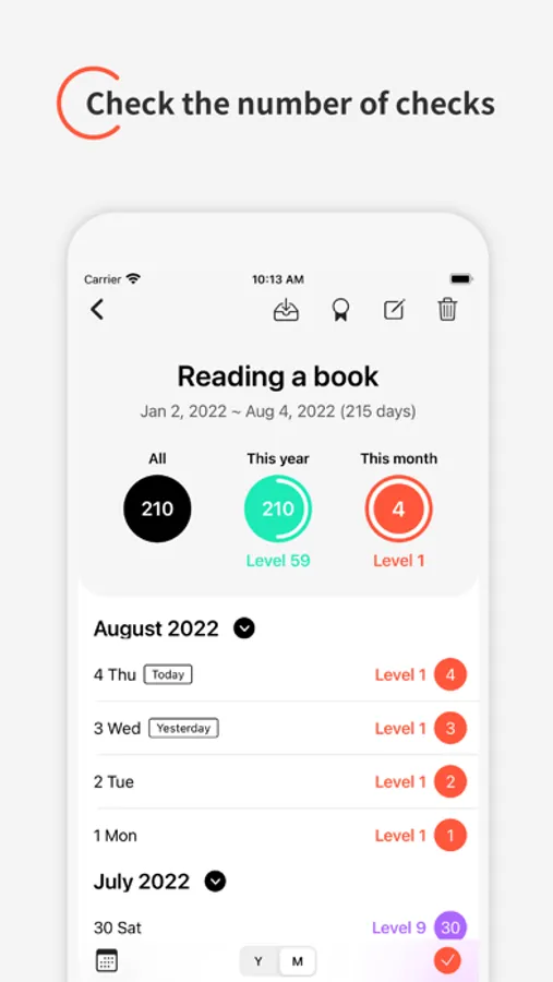 You can experience your level up like a game. In addition, you will continue to feel the stimulus to steadiness by checking the color that fills the calendar.