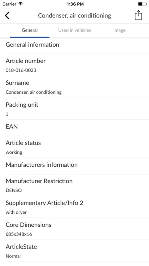 - Detailed information on auto parts