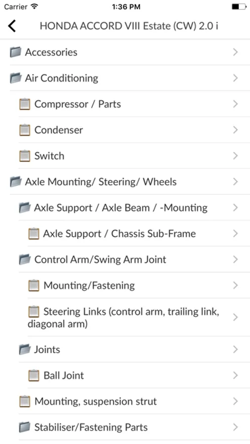 Convenient tree for searching for spare parts for brands and models of cars, for assemblies and groups of goods, and the type of axes. This is a direct search for articles on both non-original manufacturers and original car manufacturers.