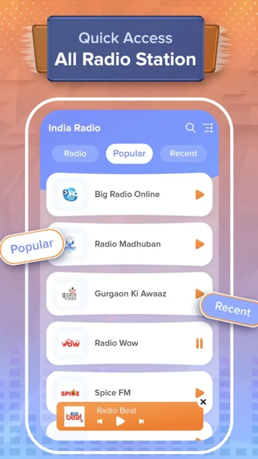 Listen to your favorite radio stations for free with Indian radio. We are try to add 250+ radio stations in future, Indian radio has the largest selection of sports, news, music and talk radio from around the world.