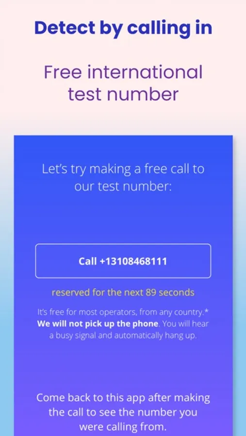 WhatIsMyNumber.io is a free app for iOS and web that will find your mobile number in seconds whenever you have a question "What is my phone number". Just install the app on your device and tap "Detect Now" to get started. The My Number app will scan your SIM card info and show you your phone number. If the phone number is not written on your SIM card, the app will give a free number you can call to detect your number using caller ID and display your phone number inside the app after you hang up.