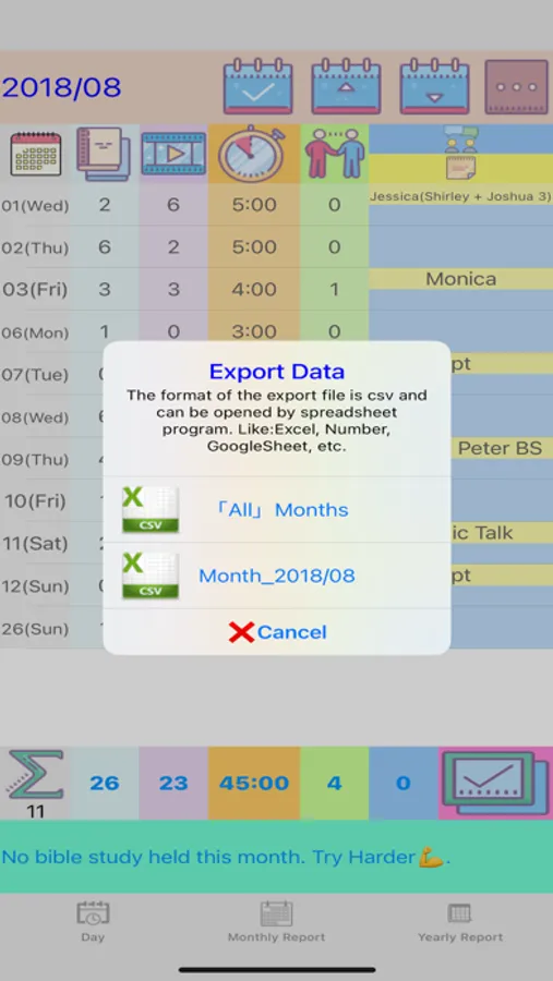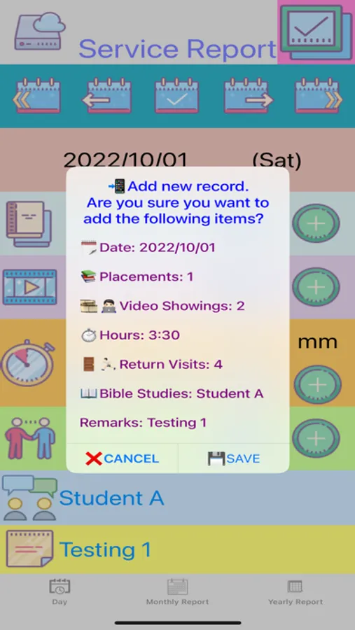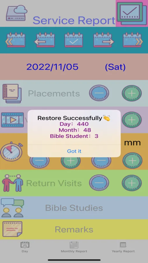 1. One-click backup/restore of "Monthly Report", "Yearly Report" and "Bible Student" (Convenient to switch to a new device. Data can be backed up/restored through Airdrop or other methods.)