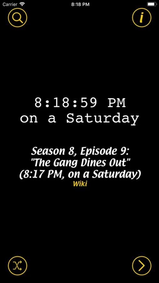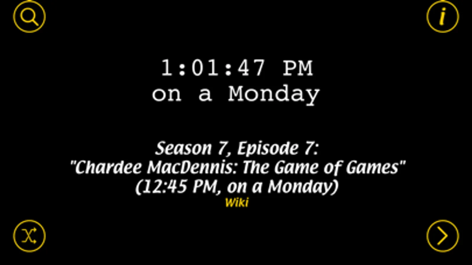 SunnyTime will show you the episode of IASIP that is set closest to the current time where you are. It'll also provide you with a link to the 'It's Always Sunny in Philadelphia Wiki' for the episode.