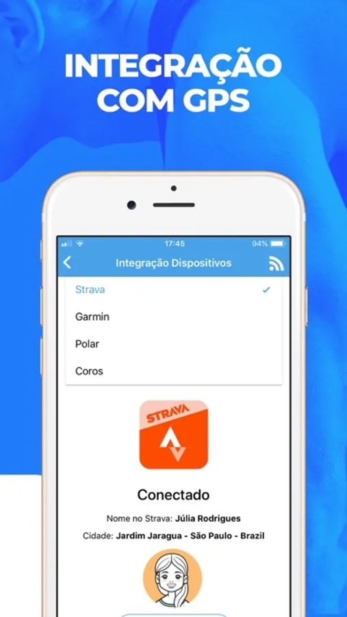 - Integração fácil com dispositivos (Strava, Garmin e outros);
