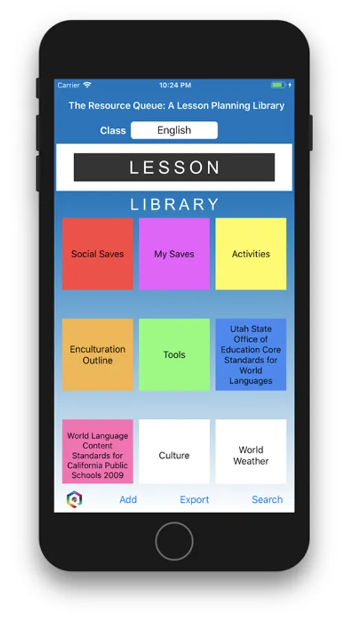 When you’re ready to plan your lesson, you just double tap on the resource and it populates into your lesson plan. If you want a whole category in your lesson plan, such as links to the weather in different countries around the world so students can discuss the weather each day in a different country, you just double tap on the World Weather tile and all resources are queued up to rotate through your lesson plans in order. Don’t like the sequence? Drag and drop it to a different position. Don’t want to use a certain resource this time around? Two taps takes it out of the queue and drops it to the bottom of the list until you want to use it again.