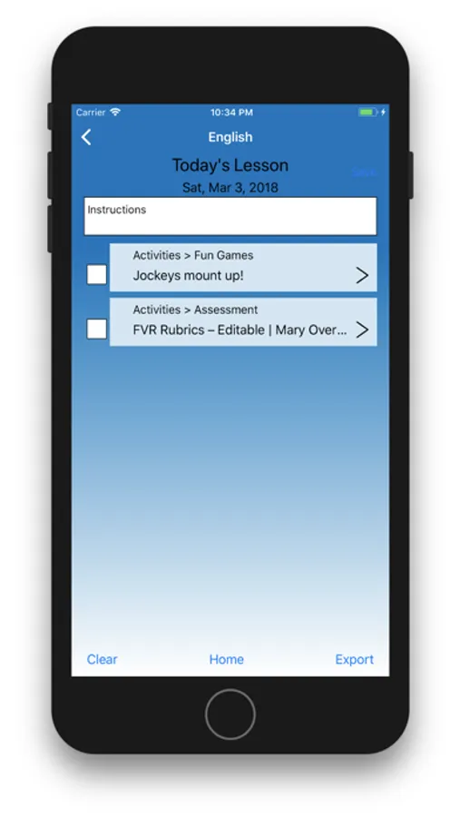 Once your lesson plan is populated, you can export it to the substitute teacher, your principal, absent students, post on your web page or screen share right from your device onto the projector screen in your classroom. Our export feature contains any resource text, URLs and the instructions you type in. You never need to search for hyperlinks again.