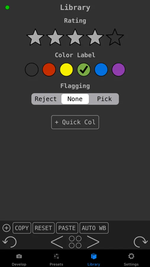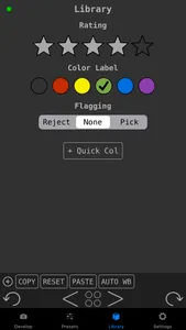 • Rate photos, add photos to a rapid collection, flag photos, label photos, and navigate between photos.